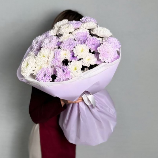 Букет из 9 фиолетовых и белых хризантем